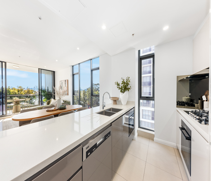 Premium kitchens featuring brand new FRANKE appliances with a 7 year warranty and 40mm Caesarstone benchtops. All rooms feature floor-to-ceiling glass, some with double glazing, ensuring superior thermal and sound insulation for privacy, comfort, and energy efficiency.